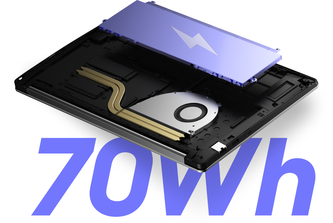 The 70Wh high-capacity battery delivers extended usage for daily work and entertainment, letting you say goodbye to battery life worries.
